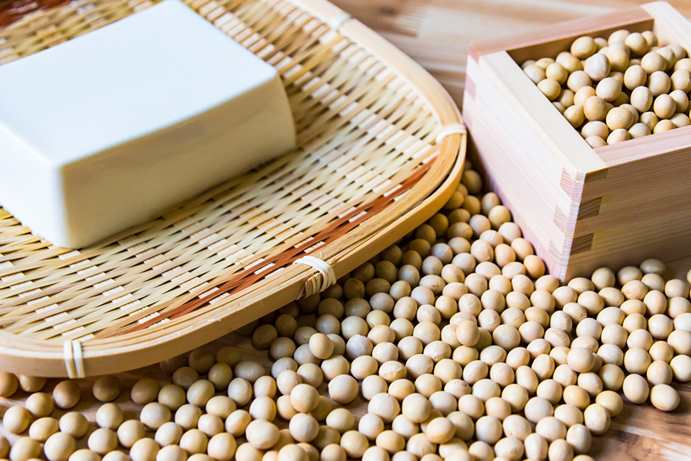 私たちの豆腐は、「濃い豆乳」にこだわり、水っぽさのない、しっかりとした食感を追求しています。